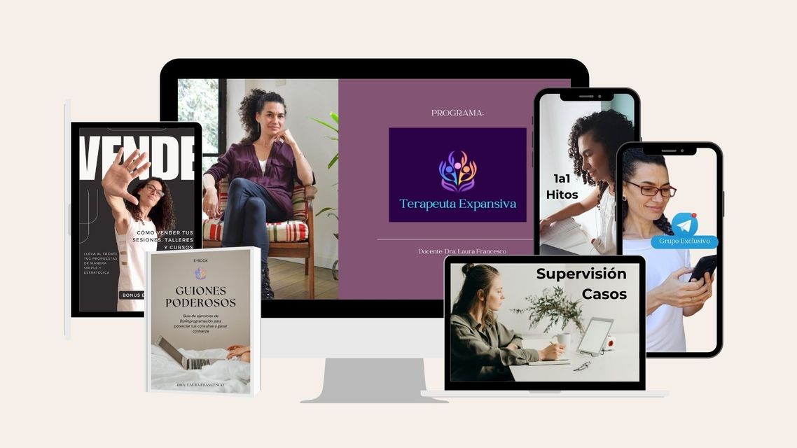 En TERAPEUTA EXPANSIVA, aprenderás cómo diseñar y aplicar estas técnicas de manera efectiva, para que puedas llevar a tus clientes a niveles más profundos de transformación, desde la 1er sesión